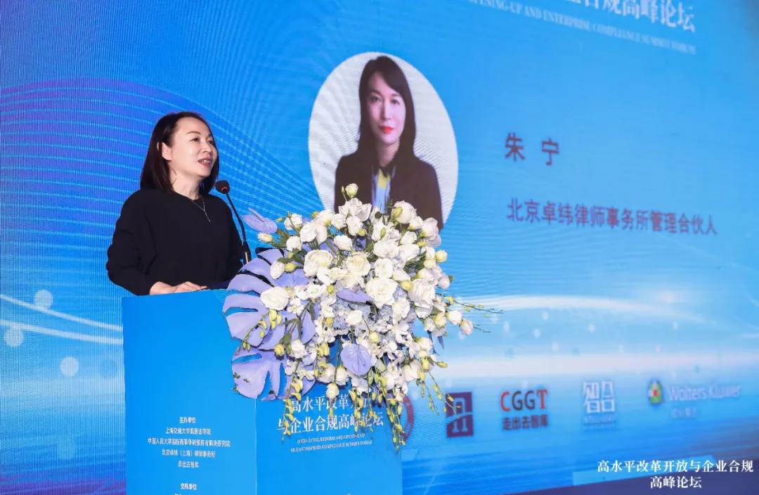 朱宁律师代表卓纬律师事务所对本次论坛的召开表示热烈的祝贺。朱律师表示,国家推动浦东高水平改革开放,打造全面建设社会主义现代化国家窗口,作为企业,作为法律人,身处于复杂的国际经济形势之中,面对高水平改革开放,在企业合规的要求下,探讨应对措施刻不容缓。