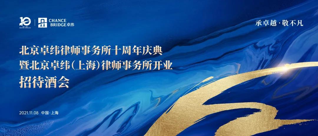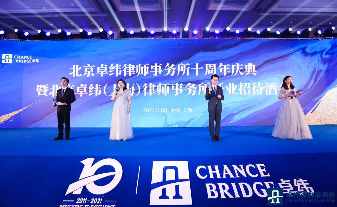 浦江奔涌,东方潮阔。2021年11月8日,卓纬成功举办十周年庆典暨北京卓纬(上海)律师事务所开业招待酒会。来自各界的领导、嘉宾、故友应邀出席,与卓纬同仁,欢聚在上海香格里拉大酒店,共同庆祝卓纬律师事务所成立十周年。