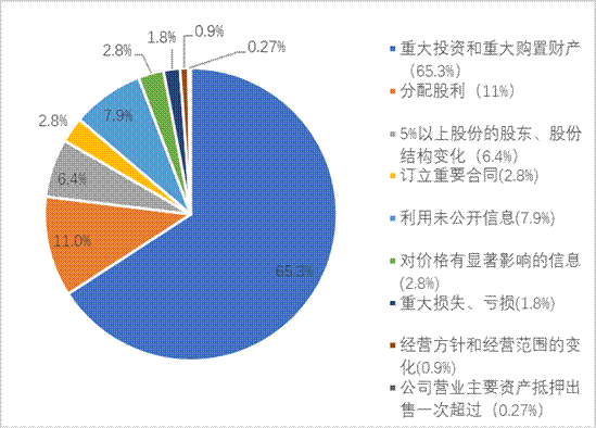 前述关于2010年至2021年间中国证监会处罚的内幕交易案件类型分析显示,上市公司并购重组中的内幕交易在内幕交易行为中数量占比较高,属于证监会重点关注的证券市场违法行为。根据证监会关于2020年办理案件的情况通报, “2020年,新增内幕交易立案案件66件。从案发领域看,并购重组仍是内幕交易高风险领域,全年新增案件28起(占42%),股权转让、业绩信息等领域的内幕交易案件也有发生,利用科创板公司重大信息实施内幕交易的案件露出苗头。” [4]与2020年相比, “2021年办理内幕交易201起,案件数量连续三年下降。从案发领域看,涉及并购重组、新股发行、控制权变更等重大资本运作信息的内幕交易案件占64%,涉及业绩公告、商业合作的内幕交易案件也有发生。”[5]根据前述通报数据,虽然涉及内幕交易的案件数量下降了,但并购重组领域的内幕交易行为仍居高不下。
