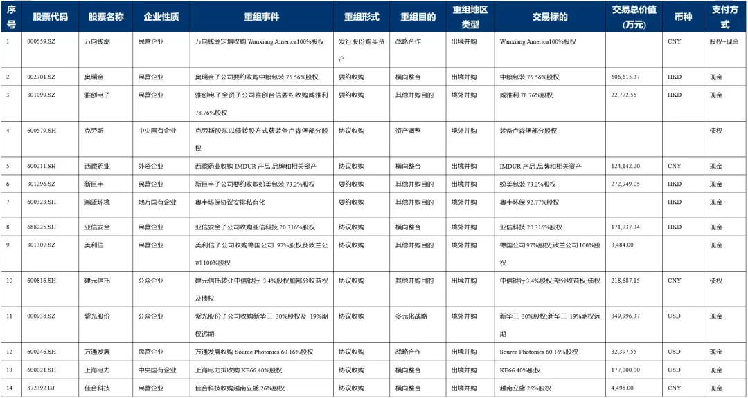 截至2024年8月6日,2024年度涉及境外并购/出境并购的A股上市公司情况如下: