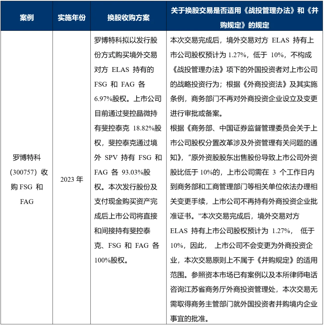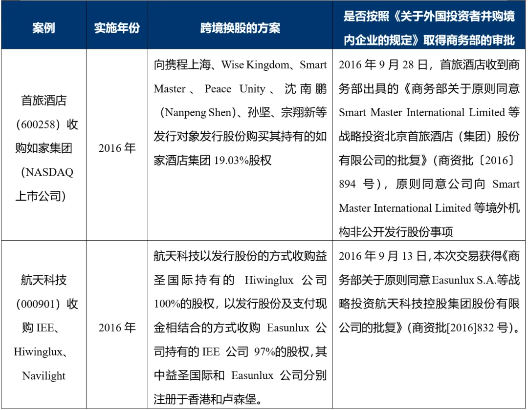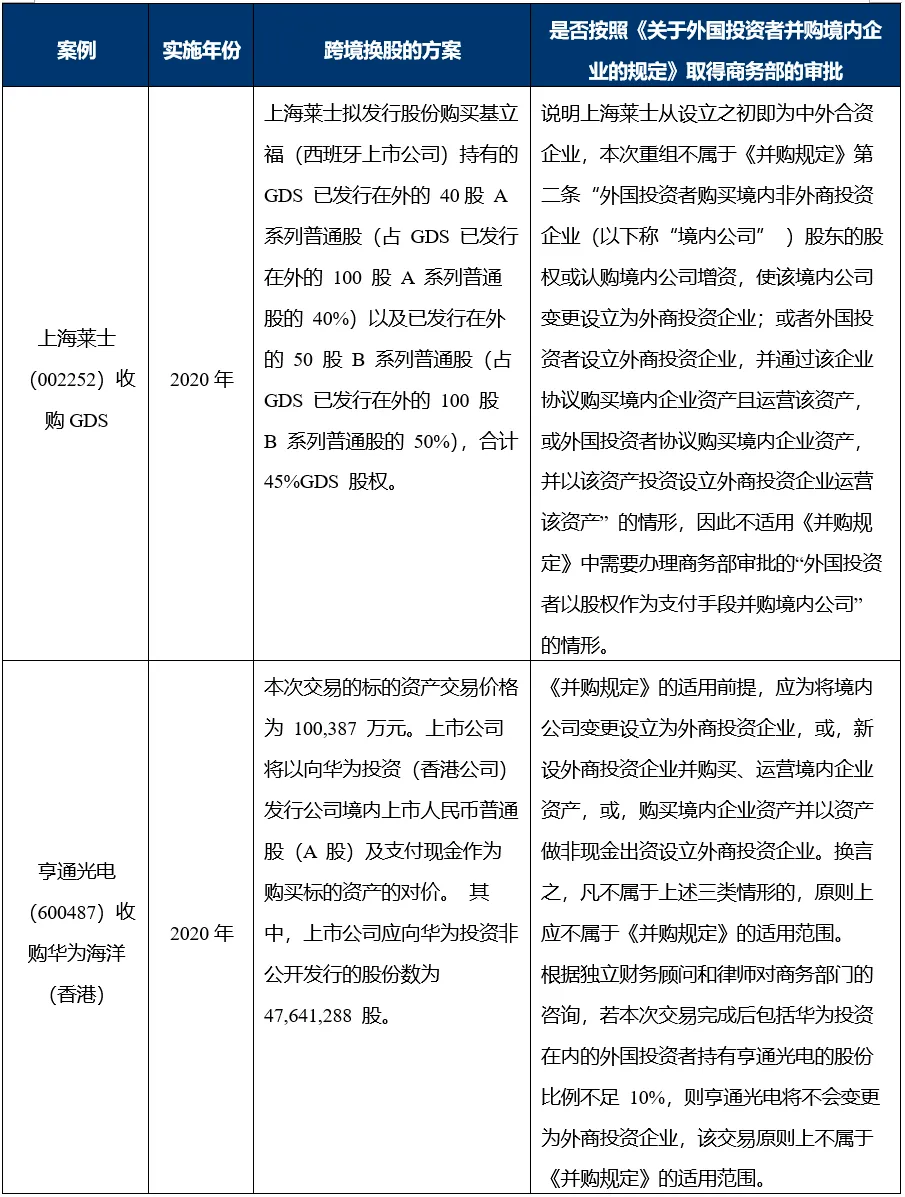 在《外商投资法》实施之前,上市公司通过跨境换股方式收购境外目标公司权益的主要案例如下: