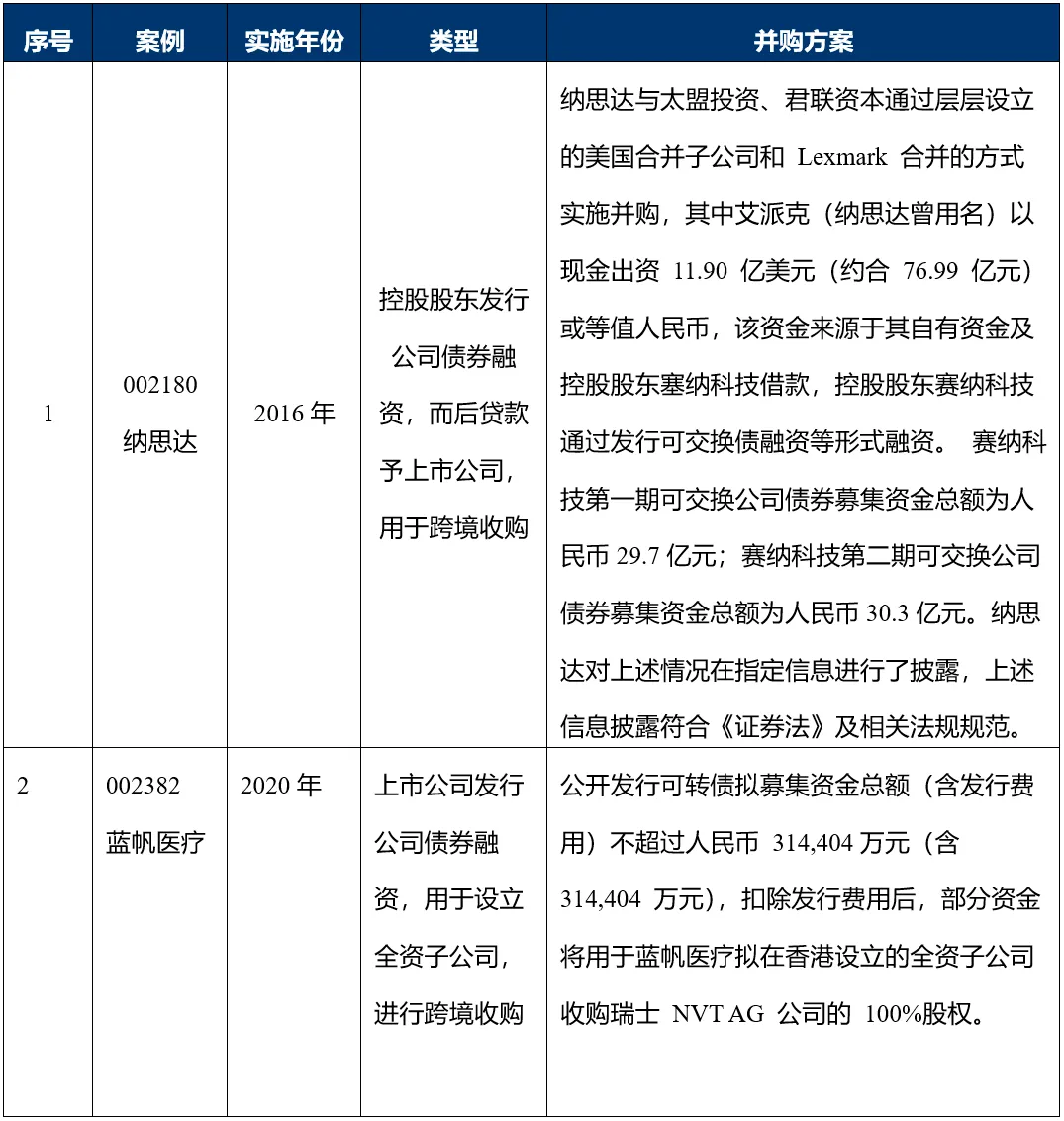 发行债券是债权融资的一种,根据发行地点的不同通常可分为境内债券发行和境外债券发行。境内可以发行的债券主要包括企业债券、公司债券及银行间债务融资工具等。根据上市公司非公开发行股份相关规定,上市公司可以通过发行债券的方式募集资金用于实施境外投资或跨境并购。具体案例包括: