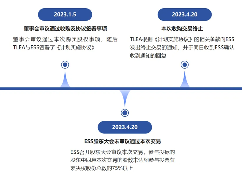 2023年4月20日,ESS召开股东大会审议本次交易。根据本次股东大会的投票结果,半数以上的股东参与了本次投票,但参与投票的股东中同意本次交易的股数未达到参与投票有表决权股份总数的75%以上,因此本次交易未获得ESS股东大会审议通过,最终交易终止。
