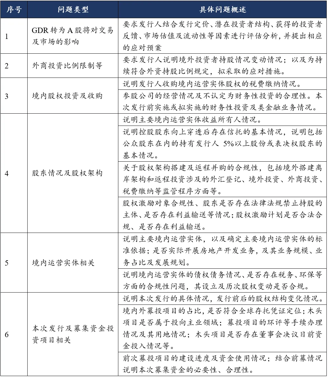 结合以上案例,以下总结境内企业履行第二上市的境内审批程序时,审核机构通常关注的法律问题: