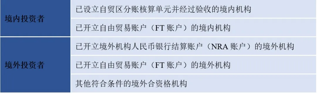 中债登《自贸债业务指引》“附件2-2 投资者基本信息表”、上海清算所《跨境债券业务指南》“附3全国银行间债券市场投资者基本信息表(法人机构)”中列举的境外机构类型主要包括“国际组织、境外央行、人民币清算行、境外参加行、境外保险公司、QFII、RQFII及其它”。因此,在操作层面,中债登和上海清算所也保留了其他合资格境外金融机构参与债券认购的窗口。