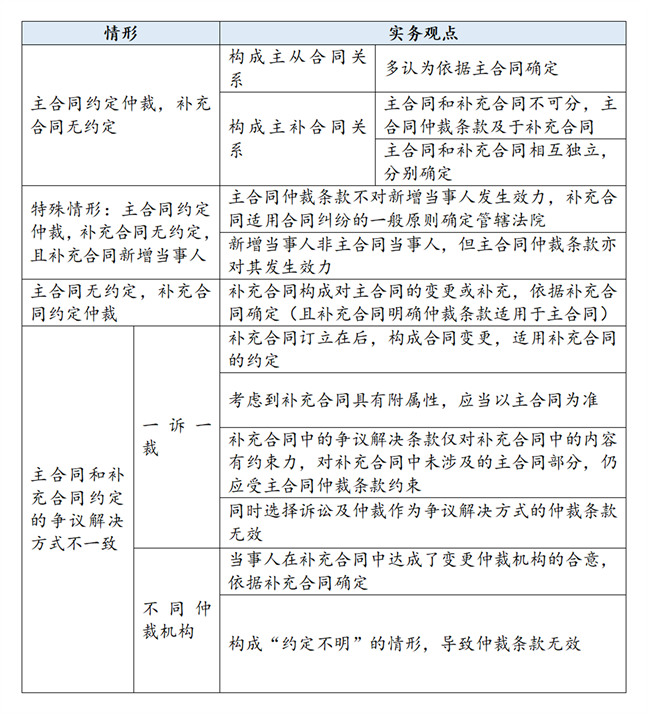 三、情形一:主合同约定仲裁,补充合同未约定争议解决方式