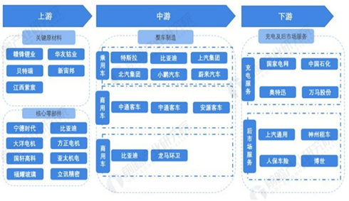 随着国际经贸格局的变化,各个行业都在呈现一体化发展,实现供应链的健康和稳定。从供应链的角度来看,电动汽车上游主要包括电池、电机、电控等核心原材料及零部件;中游是电动汽车制造;下游包括充电服务、后市场服务等。